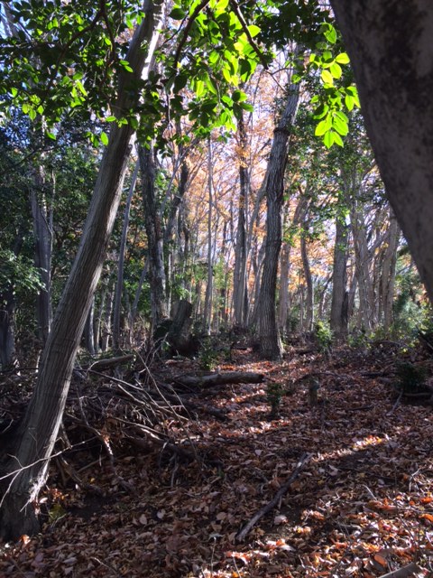 この日は風が時折強く吹くため、森の中で鳥を待ちます。